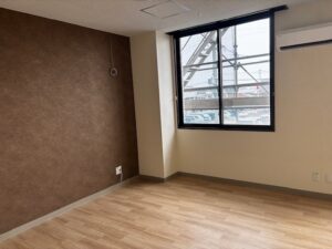 居室の様子 居室の壁紙は階ごとにアクセントカラーを変えています。